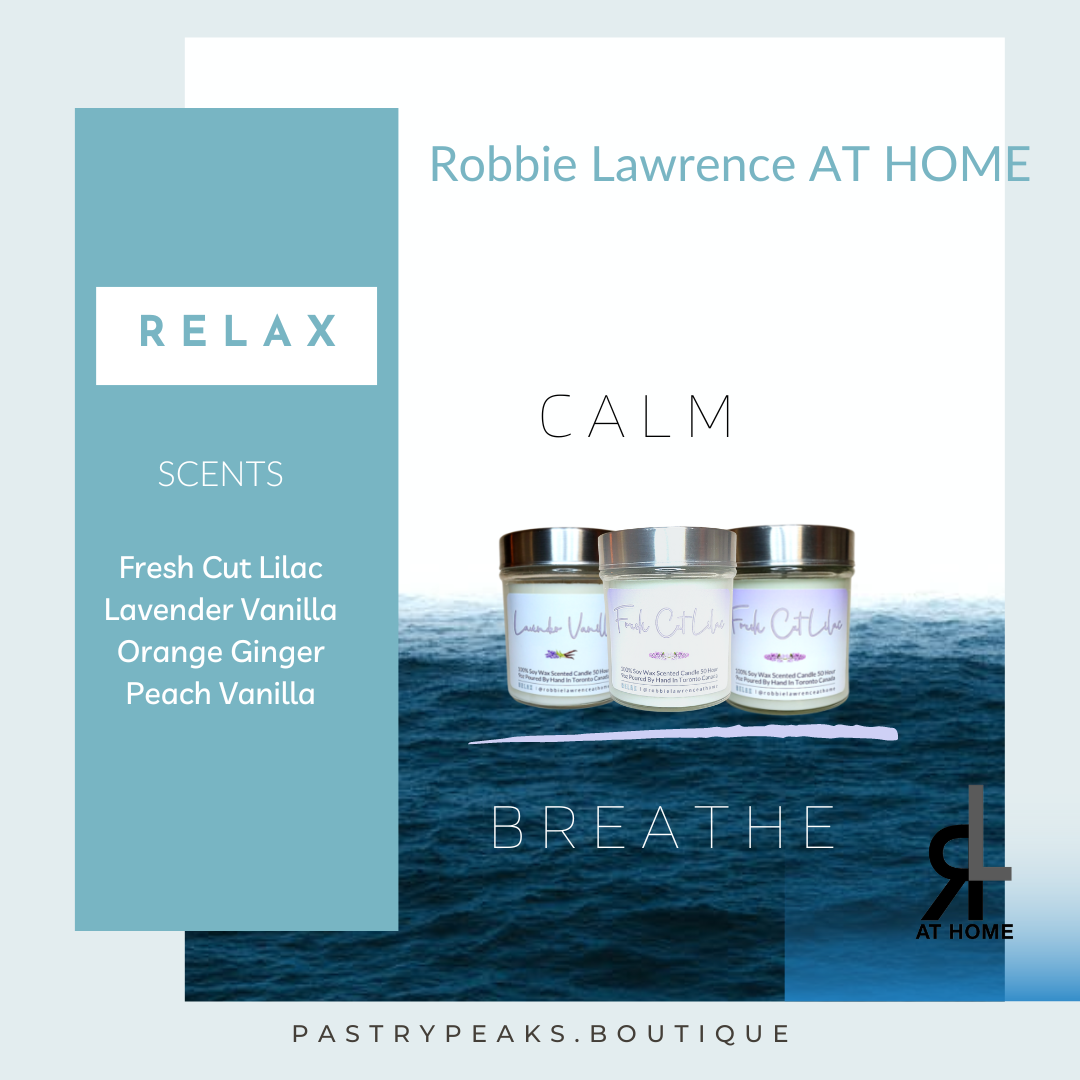 Robbie Lawrence AT Home's Relax collection of soy based scented candles are meditative and calming. This collection of floral, fruity, and herbal scents will create a soothing ambience in any room.